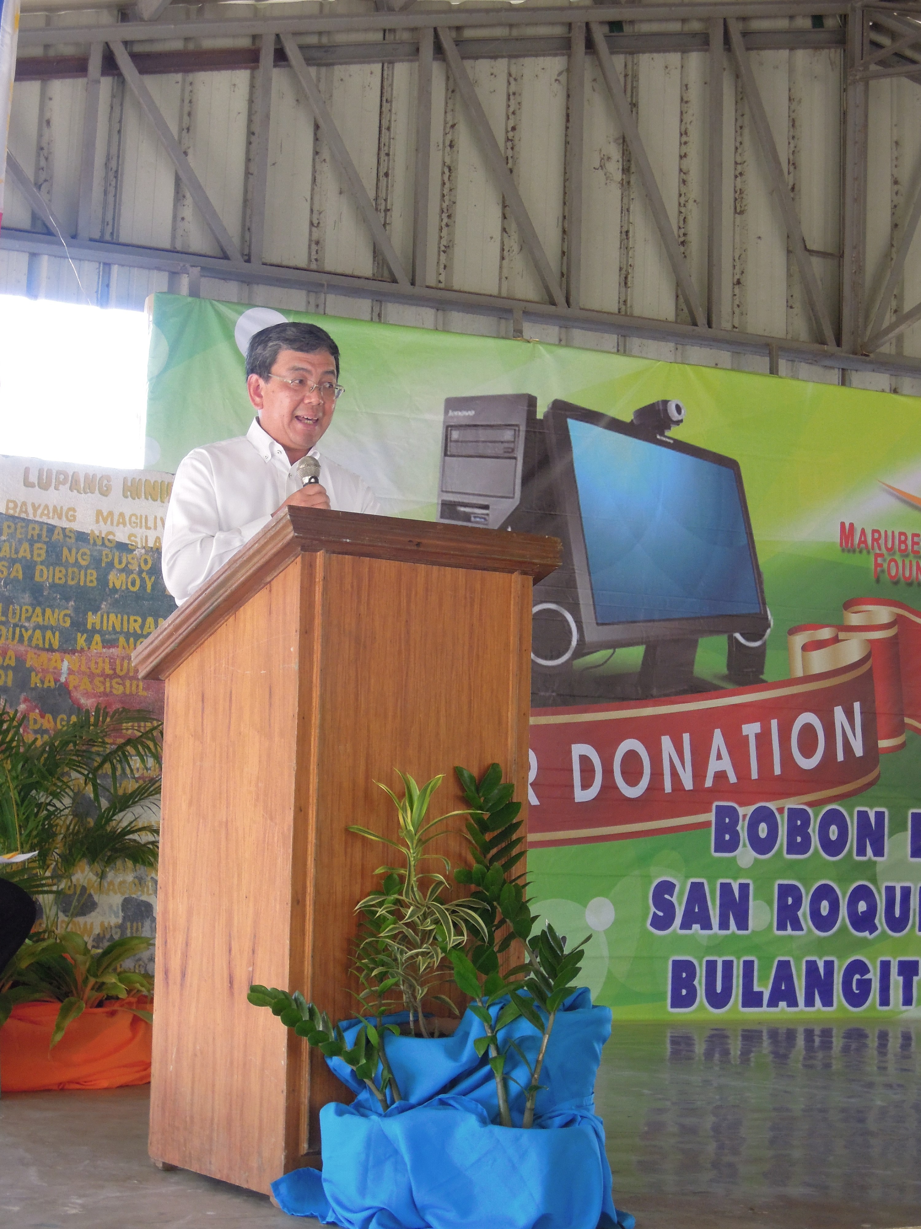 Marubeni Scholarship Foundation, Inc. (MSFI) together with the San Roque Power Corporation (SRPC, 50% Marubeni Corp., 50% Kansai Power Intl. Corp.) donated a total of twenty-four (24) units of desktop computers to three public elementary schools in Pangasinan province located in Northern Philippines. SRPC operates the San Roque Multipurpose Dam in Pangasinan.